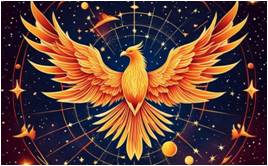 La Fenice è un mitico uccello, di cui in ogni epoca esiste un solo esemplare. Essa si rigenera ciclicamente morendo e risorgendo dalle proprie ceneri, e che con forme più o meno simili si ritrova in molte altre mitologie. Ha un aspetto simile a quello di un’aquila, e talvolta anche di un gallo, con cui essa condivide la vocazione canora, e la sua figura è associata al sole e ad un grande albero.
